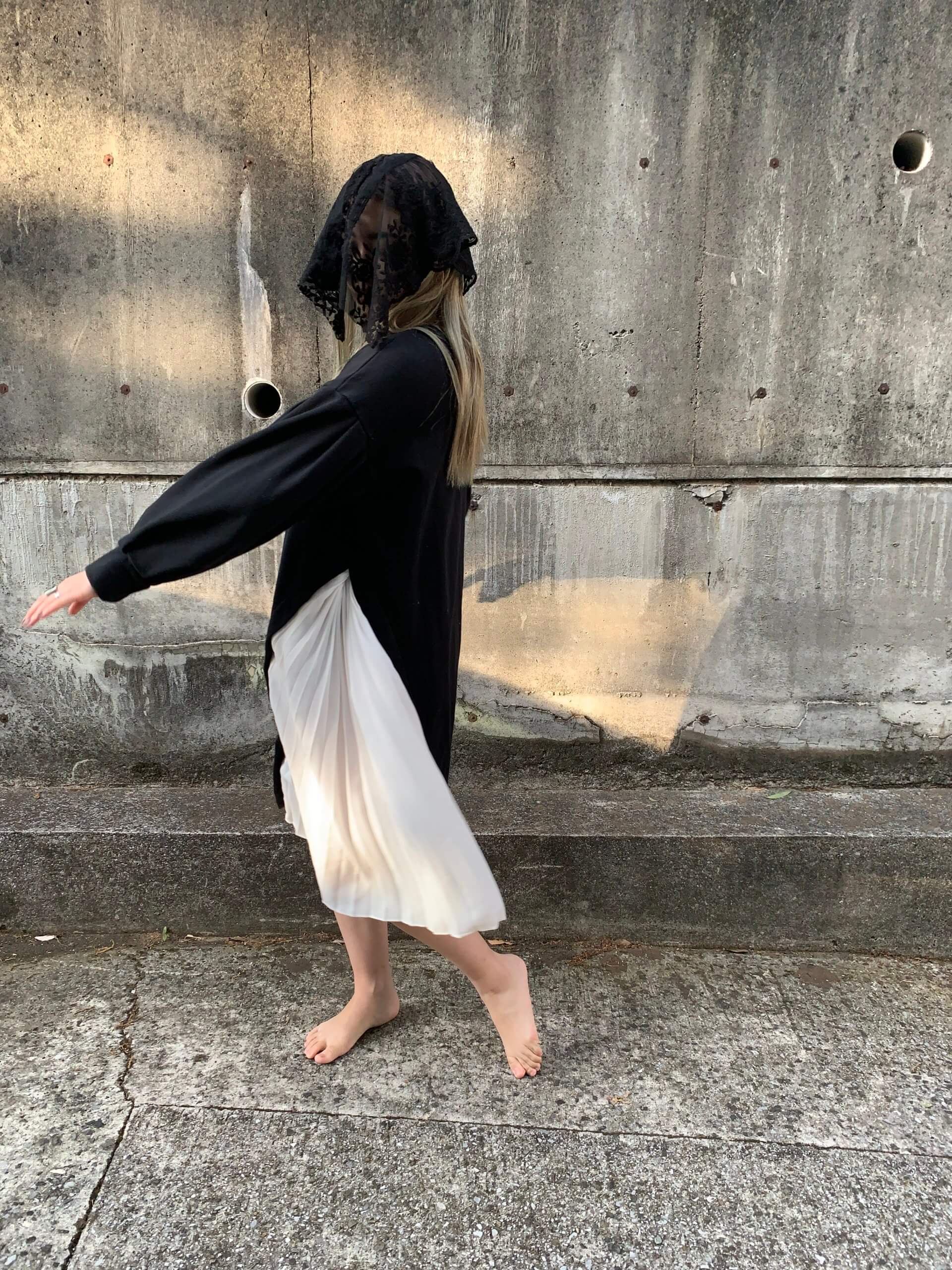 Black&White dress + No shoes + Covered face with black lace, Personal Collection