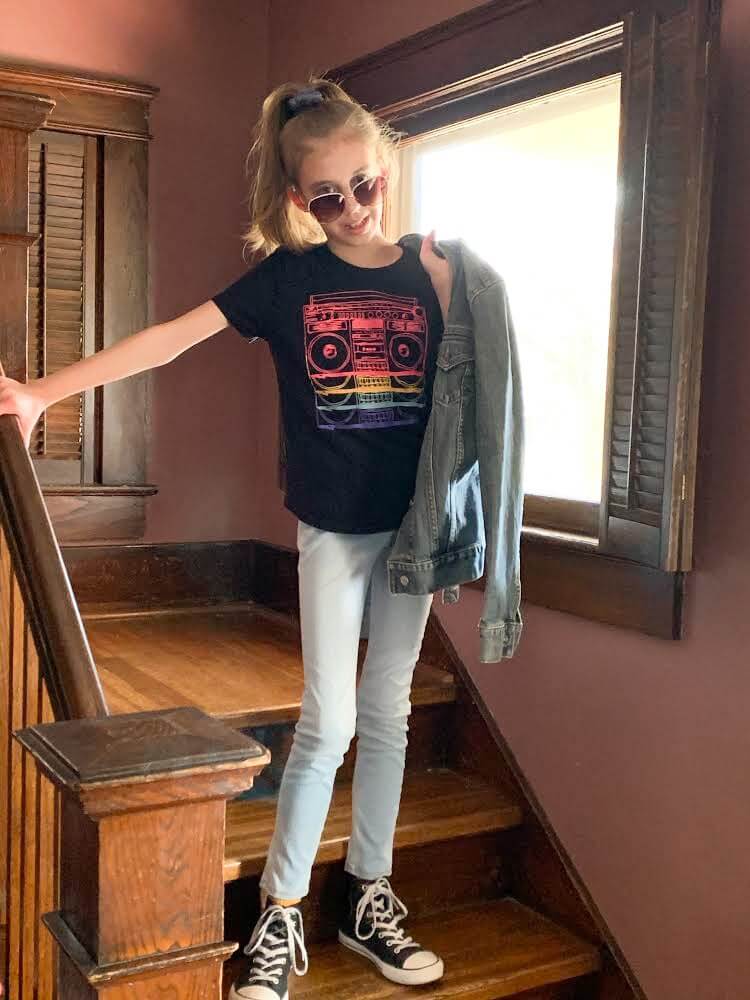 Look #10 Street Style Stylist: Chie Kai Outfit: Rainbow radio T – shirt, skinny pants, denim jacket Shoes: Personal Collection Accessories: Personal Collection Model: Lillian Weatherall Photographer: Jenny Weatherall Art by: Josh Weatherall Location: Brockport, NY